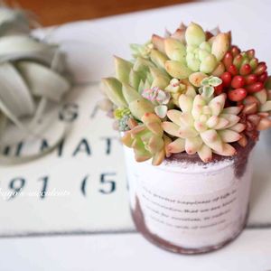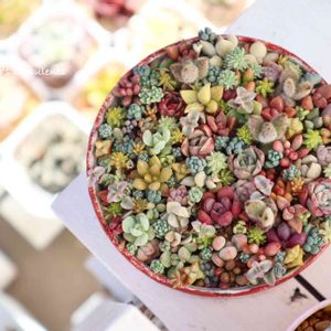 多友さんからいただいたリメ鉢に 寄せ寄せ…🌿 やっぱり多肉は白が合うな♡