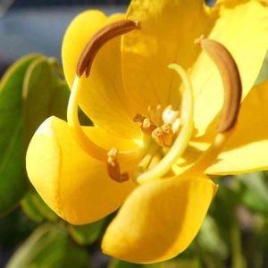 2021/8/19撮影 マメ科センナ属 南米原産の花木。 ジンジャーリリーのすぐそばに植わっていました。 先週、@だあくさんのpicで、この花がup🌼してあるのを見て、咲いたところを見たいと思っていたら、会えました^_^ 会えましたよー 下の二本の雄蕊は長く先が釣り針のようになっていて特徴的です。 花びらだけでなく、花糸の色も黄色ですね🌼😍