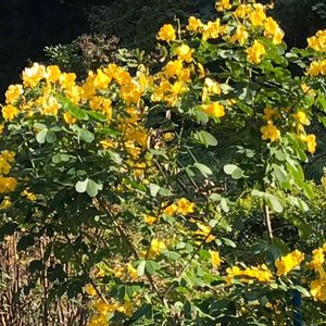 花友さんのお庭に咲く黄色い花。 花の少ない晩秋のお庭で、一際 鮮やかに見えた。名前を知らなかったので、しらべたら、アンデスの乙女(コバノセンナ)という素敵な名前でした。