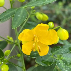 明るく可愛らしいお花を 贈ります🎗 アンデスの乙女 (ハナセンナ、アルゼンチンセンナ)🌼コバノセンナ せめて、気持ちだけでも...🥰目指せ、乙女💚🤣 マメ科センナ属 常緑低木 原産 ブラジル、アルゼンチン 花期 9~10月 葉は羽状複葉、小葉は楕円形 雄蕊9本(黄色い花糸に褐色の葯)雌蕊は、淡緑色で、先が湾曲している。 ↓↓ 今は、蕾🌼で、蕊(シベ)が見えませんね💧🤣 夜になると、花弁を閉じて?眠るようです。オヤスミナサイ💤🌼 土砂災害、河川の氾濫や浸水に、 どうぞ、お気をつけて下さいね🌟 🌟(pq*´ `*)♡*。