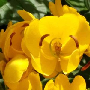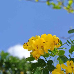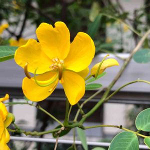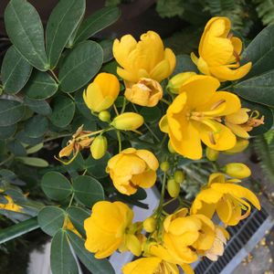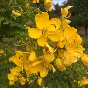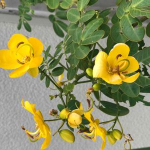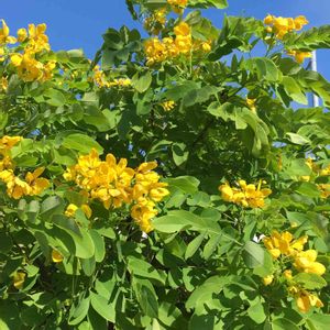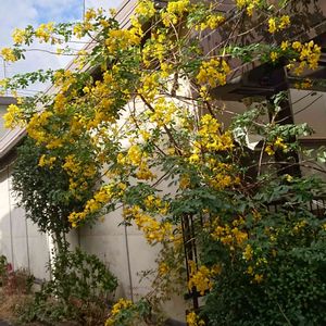今日撮った写真です。家屋の2階ぐらいまでに成長していました。何という花?木?でしょうか。 名前を教えて頂きました! 「コバノセンナ」です。 南米原産のマメ科の植物です。 黄色い花をたくさん咲かせるので見応えがあり、 とても華やかです🤗 似た植物にハナセンナ(アンデスの乙女)がありますが、 葉が異なるので見分けることができます。 開花時期は10月〜12月。 2019年12月21日撮影。
