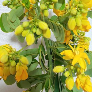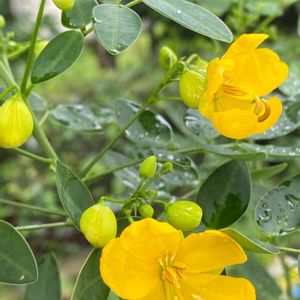 ☘️コバノセンナ☘️.....いきいきとした黄金色のお花&かわいい楕円形のこの葉っぱが好き〜🤗✨へぇ、南米原産のマメ科センナ属なんだ。