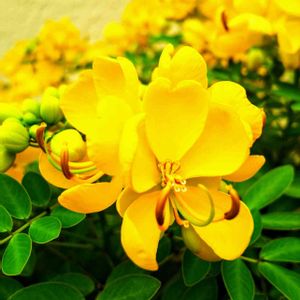 コバノセンナ(小葉の旃那) 別名 カッシア いつも通りかかる児童公園の花壇 それほど大きくはないが色鮮やかな黄金色の花木に惹きつけられました。😍 美しい花💖 蕾も可愛い💕 ♦️特徴 緑色の雌蕊を包み込むような 2本の湾曲した茶色の雄蕊 《雄蕊のナイト》 夜になると葉を折りたたみ扇子のような形で 眠りにつくとか(確かめたい) ♦️同属のハナセンナ《アンデスの乙女》との違い 雄蕊が多い(10本) 葉の先端が尖っている (ネット情報) マメ科/センナ属 花言葉 輝かしい未来 🏷日曜ビタミンカラー♪ 🏷ビューティフルサンデイ に参加させて頂きます