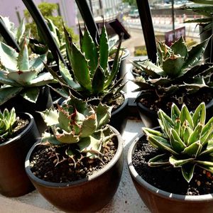 アガベ輝山 子株が2つ 今週購入した新人さん。 水やり直後の一枚です。 直径9cmと小さいながら、小さな子株が2株見えます。 値段の事で恐縮ですがタイバンコクのチャトチャック市場で約800円。 超お買い得だと思います😁 親子それぞれの成長が楽しみです😉😉🥰