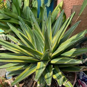 アガベ たぶん輝山いただきました タバコ屋さんの軒先に立派なアガベ タバコ屋のおばあちゃんに あのアガベかっこいいですねって 言ったら、どれ?って 好きなら一個持っていきなって 隣にあった群生してる鉢から 素手で株を抜いて、もいでくれました 袋まで用意していただきました ありがとうございました😊