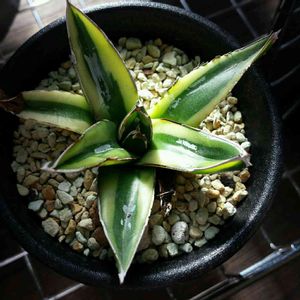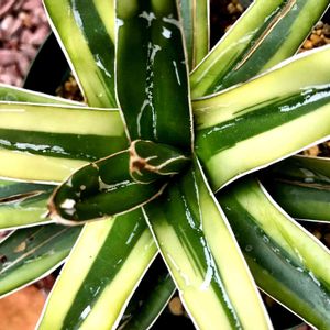 今夜の1枚は、アガベ・笹の雪(輝山) 笹の雪の黄覆輪タイプ😆キレイにペンキものってほしいですね😊