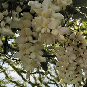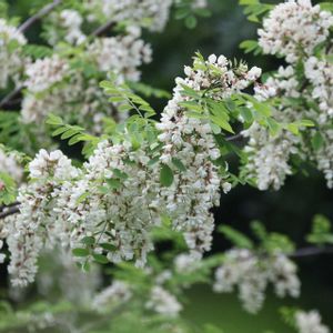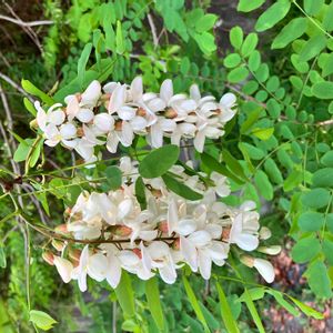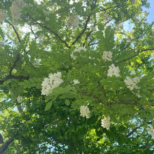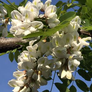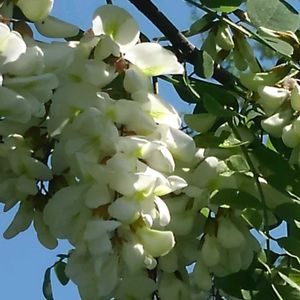 💠ニセアカシア さんぽをしていると甘い香りがしてきたので、ふと上を見上げると白い花が沢山咲いていました。 ⚫︎マメ科 ハリエンジュ属 ⚫︎原産 アメリカ ⚫︎花期 5月〜6月