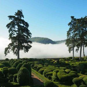 フランス南部にある庭園 marqueyssac に行ってきました。 不規則に不思議な形に刈り込まれた木々の向こうには この時期の朝特有の朝靄が広がっていました。 まさに空中庭園。 山頂の展望台からは、渓谷・川・丘・城の織り成すペリゴールの絶景が一望できます。 パリから夜行バス、市バス、電車、タクシーと乗り継いで、9時間! 行ったかいがありました!