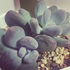 ラウィ様♡ うちにある多肉ちゃんの中で一番の暑化粧 。:+((*´艸`))+:。 本当に表面のお粉が多い。 でも、そのおかげで、加工なしでのこの色♫ 青白く涼しげです⁽⁽ ◝(´꒵ `◍)◟ ₎₎