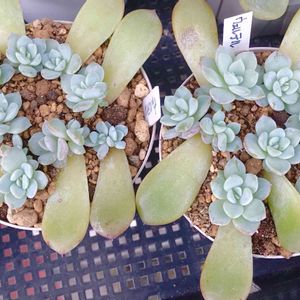 咲くやこの花館のSAKUYA GREEN JAM2でお迎えした株その② ホワイト ワン です✨ たくさん並ぶエケベリアたちの中で最初に目が合いました✨👀✨🤭💕 あまり聞いたことのない名前でしたがすごく気になりお迎えしました! お店の方によると、ラウイよりは粉は薄いものの通常は名前のとおり白いとのとですが、紅葉するときれいなピンクになるとのことでした。 この子は他の子よりも紅葉が進んでいるらしい…✨🥰 冬が楽しみになりました☺️🎶💕