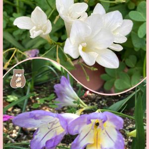 一歩一花🍀 フリージア🤍💜 アヤメ科 フリージア属 別名・アヤメスイセン(菖蒲水仙) 【やさしくも菖蒲さく也木曽の山】正岡子規