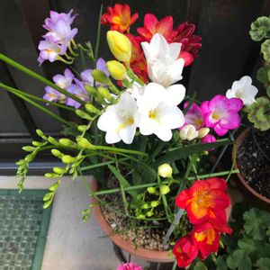 球根植えるの遅かったので、フリージア今満開です😃香りが好き❣️