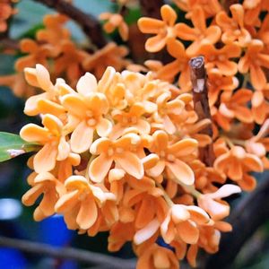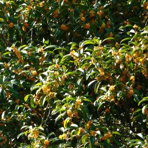 10月30日 今日のお花『キンモクセイ 』です。 【キンモクセイ(金木犀 )】 中国原産、モクセイ科高木 秋に甘い香りを漂わせながらオレンジ色の小花が開花する。 庭木のほか、公園や街路樹としても利用され、甘い香りのする花は秋の訪れを知らせてくれる。 オレンジ色の小花をいっぱいにつけた姿は、日差しを受けると名前の通り金色に輝いて見える。 樹高 :5~8m 開花期:9月~10月 花色:オレンジ リフレッシュパーク豊浦@下関市
