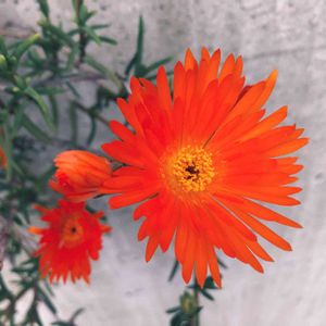 元祖多肉植物ではないかと思う マツバギク 子どもの頃はよくみかけました。 蛍光色がかったオレンジ色をアピール、お久しぶりです。