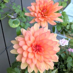 秋田国際ダリア園のダリア🩷🧡 その51 花瓶のダリア 〜東北旅行より〜 ダリアの投稿が続きますが ご了承下さい🙇🏻。