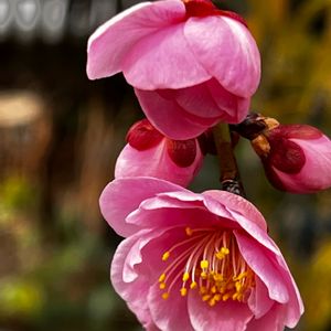 春の訪れを告げる花木 枝垂れ梅🌸 最初は濃い桃色💕 徐々に淡い桃色に変化します🎶 枝垂れ梅🌸 バラ科