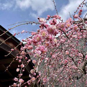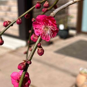 冷たい強風が吹いて寒い日でしたが 枝垂れ梅が見事に咲いていて 癒されました☺️