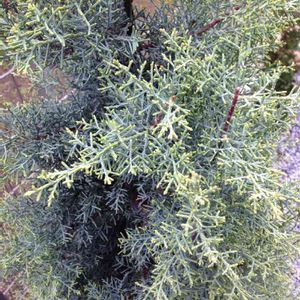 フロントガーデンに植えてからもうすぐ5年になる、コニファーの中でも特にお気に入りのサルフレアです🐱 クリーム色掛かった柔らかいグリーンが、秋晴れの空に映えていました☀