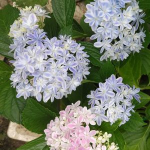 お庭の紫陽花💗💜🩵💙☔️.*・゚ ❤︎ 1枚目…5年目の万華鏡✧*。 ピンクが親株、毎年水色系で咲いてたのに、あげていた肥料も赤色肥料じゃないのに、ピンクが咲きました💗これも美しい✨ 下の水色は、挿し木っ子!!親株より樹勢がいいです!! どちらも10号鉢🪴支柱立てまくりでも、雨ではおじぎしちゃった○┓ペコッ♡⃛ ❤︎ ꯁꯧ加茂セレクション ごきげんよう🙌💕 5年目、地植えで育てています💙 ꯁꯧハイドランジア サファイアクイーン 6年目、地植えと鉢植え🪴色づきが濃くなると、花が着いてる軸まで青くなります💙 ごきげんようと似てます\(ϋ)/\(ϋ)/💕 ❤︎ おたふく紫陽花(⑉• •⑉)🩷 もう何十年いるのか知らない、地植えの古株さんがいます!! 去年挿し木をして、赤色、青色肥料で育てています💗🪴💙今年は青色がキレイに出なかったです💦 ❤︎ ガクアジサイ💠 名前不明のガクアジサイを去年挿し木して、今年初めて咲きました🙌🩵 ❤︎ ꯁꯧダンスパーティー💃💕 10年くらいの地植え。 年々、弱々しくなる樹勢💦狭い所でごめん( •̥-•̥ ) ꯁꯧ 名前不明の紫陽花ɿ(。・ɜ・)ɾⓌⓗⓞ? こちらも何十年もいる古株さん♡ いつも遅咲きです!!