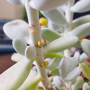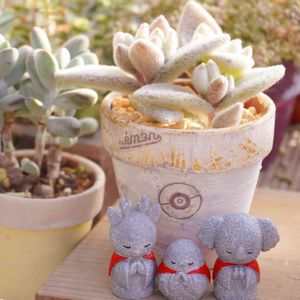 福だるま✧*。 お豆みたいな葉ですね🍀*゜ 白くお粉の葉がぷっくりして可愛いですね(*´꒳`*)👍 ̖́- 根元にはお子ちゃまもいるよ🥰