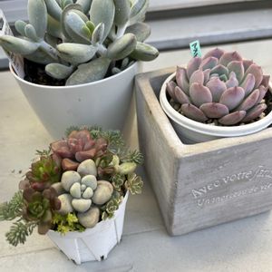 多肉とみどりのマルシェへ行ってきました。 購入したのに名前を忘れてしまって悲しんでいた1枚目、「名前教えて」に投稿させていただいたのですが、バブルキャンディだ! 「名無しなんで安いですー」と言われた多肉は新玉つづりと福だるまだと思う✨ 名札つけて管理したい派なので、名前が気になってしまう💦😂 本日のお目当てはパープルヘイズだったのですが、寄せ植えしか見当たらず💦 お店の方と「1番パープルヘイズが多いやつ!」と選んできました😂 ダシフィルムと上手に分けれるかしら😂