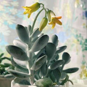ふっくら娘さん(福だるま)の 花が咲いた〜🤗🎉 約1ヶ月前の花芽のニョキニョキからの 開花🧚 もし夜にホタルが花の中でヒカってくれたら… 想像するだけで、すごく可愛くて、癒やされますね☺️ こまめな水分補給も効いていないようで、 いつも以上にボーっとしちゃいます😮💨 基礎体温低めな私には、33℃超えると暑すぎます💦 多肉さんのお世話がなかなかできていない今日このごろ… どうぞ皆様、ご自愛くださいませ🚰