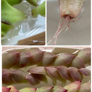 22.6.14 昨日に続き 葉挿しの日参加します🌱 私の葉挿しは 土に刺す方より ラップに刺す方が 発根発芽が早いと感じて いつもラップに刺してます😅 少し前に発根発芽してて ある程度大きくなったので土に刺しちゃってて(前portの左のサバリナ下の子)1つだけ残ってるのをゆっくりと出してみました🌱これもサバリナかな💕 出す時発芽したのが取れちゃったりするから気を付けなきゃなんだけどね。 容器は私のいつものマーガリンの容器 水を少し入れてラップをピンと張って 輪ゴムで止めて(輪ゴムが劣化して切れた時もあるからマステで止めたり) ピンセットで穴開けながら葉を刺して並べてます。 ラップはチンするとヘターっとくっついちゃう安ーいの😅 クレラップだとさけすぎゃうような💦 私が下手なのかも⤵︎ いい感じの湿度になってて乾燥する事なく維持できるから発根発芽が早いのかなぁ〜 冬もこのラップ方式で葉挿ししてます😍💕
