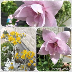 おはようございます😊 ピンクキキョウとシロタエ菊が咲きました🌼 シロタエ菊は初めて花を見ましたが、可愛い菊らしいお花でしたね😆