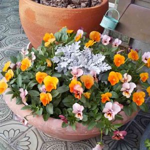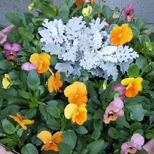 アプリコット色が沢山咲きました~😊シロタエギクはなかなか、伸びません😅