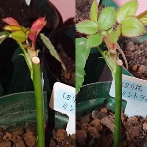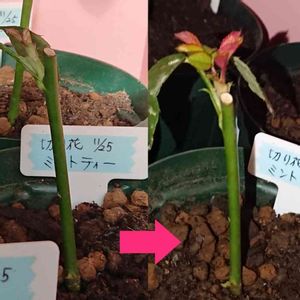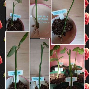 切り花品種ジュミリアの挿し木🌹 2018/12/25:~112日目(3ヶ月22日) 今日、鉢上げしました。 右側picジュミリア