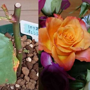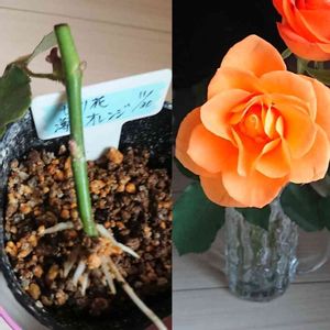 切り花品種🌹の挿し木 オレンジ(右picのバラの挿し木です) 品種不明(>︿<。) 仮命名オレンジチャンス 2018/11/30~91日目(3ヶ月1日)