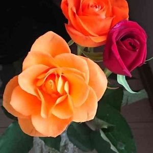 切り花品種 先程のバラ🌹 品種不明ですが分かる方教えてください(ㅅ´ ˘ `) 左下と右上のバラはエチオピア産です。 オレンジはカルピデュームかな(*´・д・)? 右上 ベルローズ(*´・д・)?
