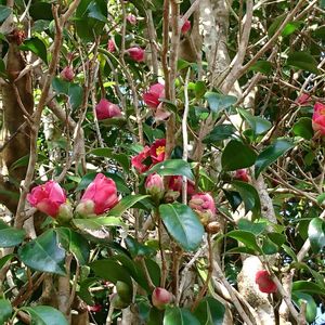 百合が原公園にて。 ヤブツバキ系のタイニースター と言う品種だそうです🌺 椿でもこんなに華やかな 品種もあるんですね🌺