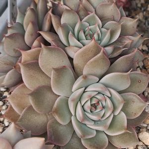 🟨グラプトベリア シルバースター 🟩 今回の植物は少々変わっています。この「グラプトベリア」というのは、実際に存在する属ではありません。多肉植物で、お馴染みのエケベリア属と、少しマニアックなグラプトペタルム属を掛け合わされた存在です。なので、自然にはいない植物となります。 この子はたしか百均出身の株です。正直、本当にシルバースターかはわかりません。タグにそう書いてあったので、多分そうだと信じてます。 ……なんか分厚くない? アカエイと申します。園芸大好き中学生です。ハオルチアの写真を主に、いろんな植物を投稿します☺️いいね、コメントいつもありがとうございます👍とても嬉しいです。