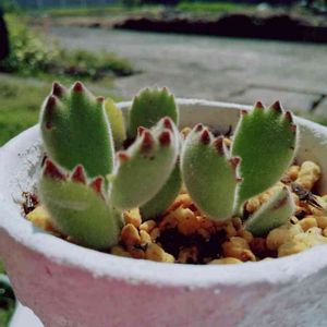 近所の方から面白い形しとるよ。(アイスのボンボンみたい👀) 『いらんね〰️』と言われもらって来てふたつに切って挿し木しました。 新芽がで始めました。