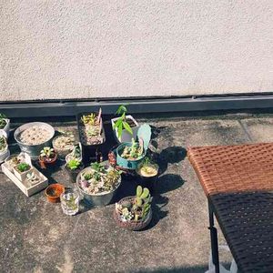 今日の日光浴🌱🌱😁☀ 気持ち良さそう~(≧∇≦)💕 私はhotコーヒー飲みながら、多肉&植物を監視😚💕