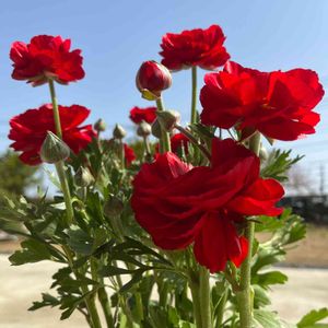 ラナンキュラス赤 ピンクアイス桜手毬の斑入りの葉 ローダンセマム白のシルバーリーフ ラナンキュラスの1番花が雨に濡れたので、直ぐにダメになり、✂️したら、蕾が次々開いてきた。 正面から撮ると椿に似てる。 斑入り、シルバーリーフは綺麗だなぁ。 右下のススキみたいな斑入りのグラスに花が咲きました。環境があったのかな、とてもうれしいです。 ウチのベランダはルーフがあり、コンクリート壁なので、雨が降っても殆ど濡れません。 洗濯物も、少しの雨なら平気なくらいです。 ですが、ラナンキュラスを1日雨//☂//の日に、 特等席(ベランダのレールに鉢を取り付け太陽光が一番当たる場所) に置きっぱなしにしたので、花びらが濡れてしまいました。 庭植えは、雨を避けられないから大変なんだなと思いました。だけど、その分、陽の光と土からの栄養を常に貰って、直ぐに次の蕾が育って、たくさんの花が咲くし、再生も早いのかな。 ベランダと庭は、 一長一短♡(˘╰╯˘)乂(˘╰╯˘)♡かな