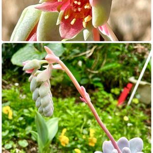 多肉ちゃん 可愛い花🌸が 咲きました💕 雨上がりの外に出して あげました👍🎶