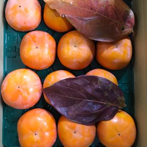 岐阜県産の富有柿が届きました。 柿だけでなく葉っぱが2枚入っていて、スゴく嬉しかったです。 柿の葉っぱを見るのも触るのも何十年ぶりです。