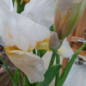 2021.04.27 デイサービスにて撮影。 この花の名前を教えて下さいね。 葉は広いです。 あやめ科でしょうね。