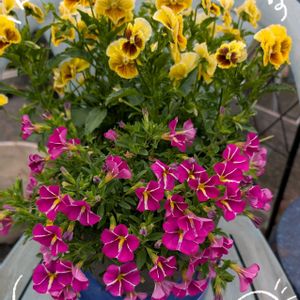 おはようございます。 パンジービオラとカリブラコア❣️ 良く咲いています。 可愛いくてパシャリ〜