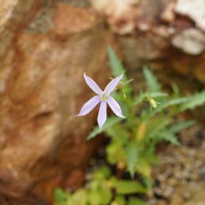 零れ種から咲いたイソトマ。ロックガーデンの隙間にどうやって飛んできたんだろ?