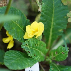 日陰に避難したらプリムラジュリアン咲き始めました。これからどうなるのかな?夏越しできるのかしら?
