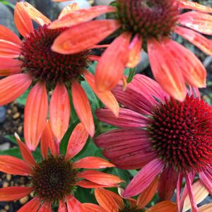地植えしたエキナセアも 咲きだしてくれました🌺 どんよりした曇り空ですが☁️ オレンジ色が眩しいです♪( ´▽`)