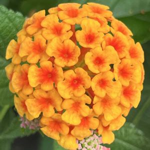 娘の家のご近所の道沿いランタナな花が可愛い オレンジとピンクの花が星を散りばめた様です