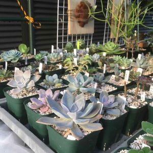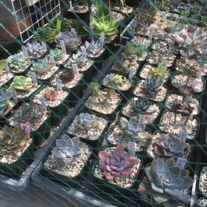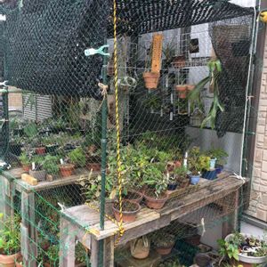 多肉棚も順調です。手前の網は台風対策のものです。
