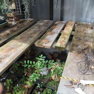 整理して、植え替えやら整姿した盆栽達。 挿し木も何株か鉢上げしましたが、挿し木の時点で曲のあった物はなかなか面白い素材に仕上がりました。