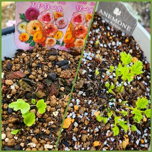地味なpicですが😅 アネモネ アンアリス ラナンキュラス エトワール お目覚めデス✨ 植えっぱなしでガレージ内で 夏越ししました😊 嬉しいな♡( *´꒳`* )♡