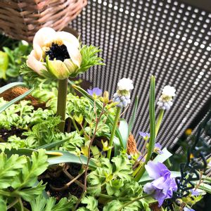 アネモネ アンアリス ムスカリ このムスカリの咲き方可愛い🥺 下のほうが青く見えるのは錯覚かな?🤔 アンアリスも色の変化があって 毎日楽しめて嬉しい(*´艸`)♡ スミレがほのかに香って良い感じ...♪*゚
