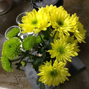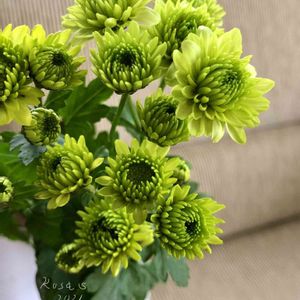 今日のお花✨スプレーギク…キク? 最近続けて投稿できて嬉しい⸜(* ॑꒳ ॑* )⸝💕 夕方撮ったので微妙ですが… 今キッチンの窓際に飾ってある グリーンマム💚ドルチェファインと グリーンミニバラ💚グリーンアイスです🎶 グリーンのお花って素敵ですよね〜 (〃´∀`〃)💕 ミニバラのエクレールも気になります✨